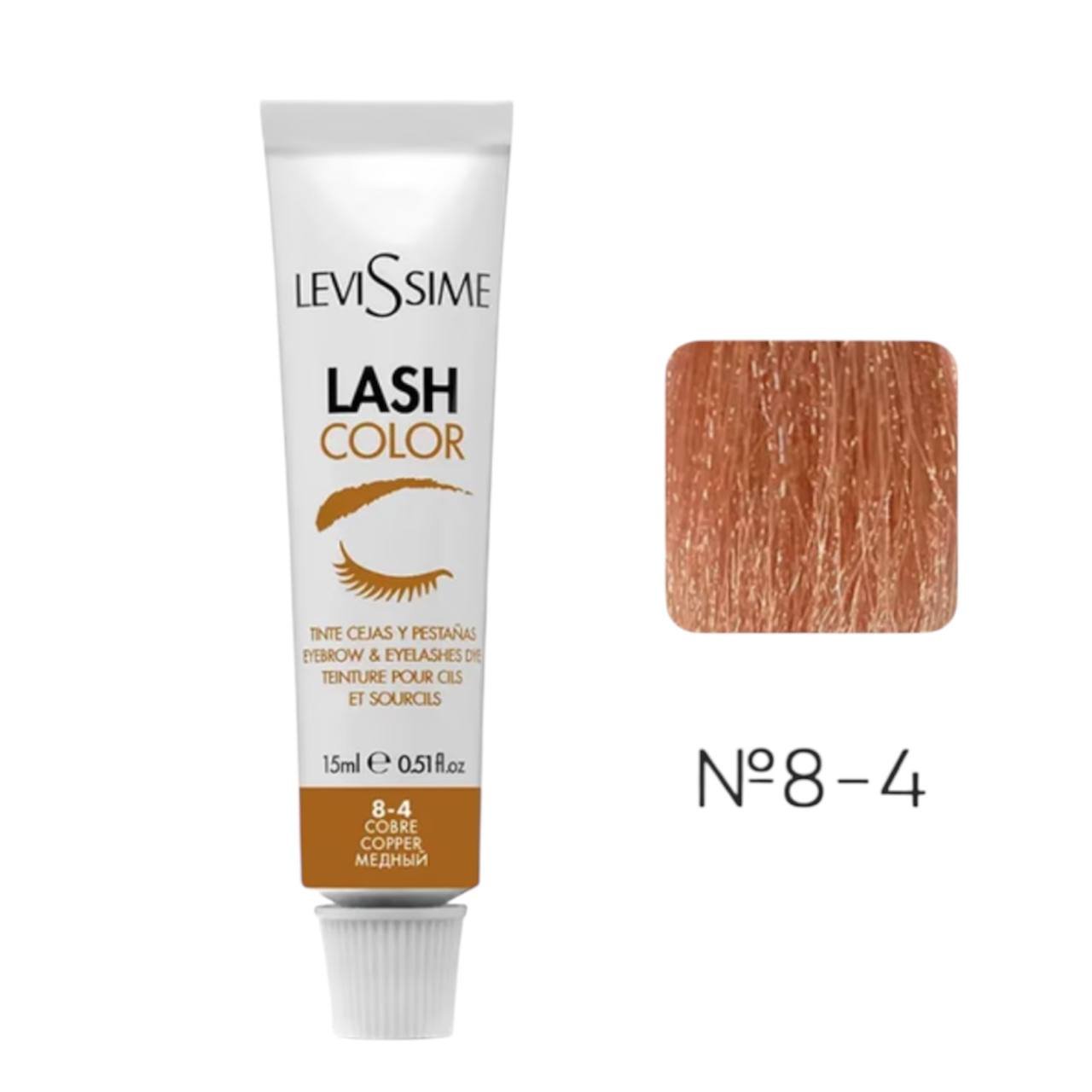 Фарба для брів LeviSsime №8-4 делікатно забарвлює волоски. Її можна використовувати як на брови, так і вії. Мідний відтінок підходить рудим, золотистим і безпосередньо мідним. Добре перекриває світлі й сиві волоски. Колір продукту яскравий і насичений.