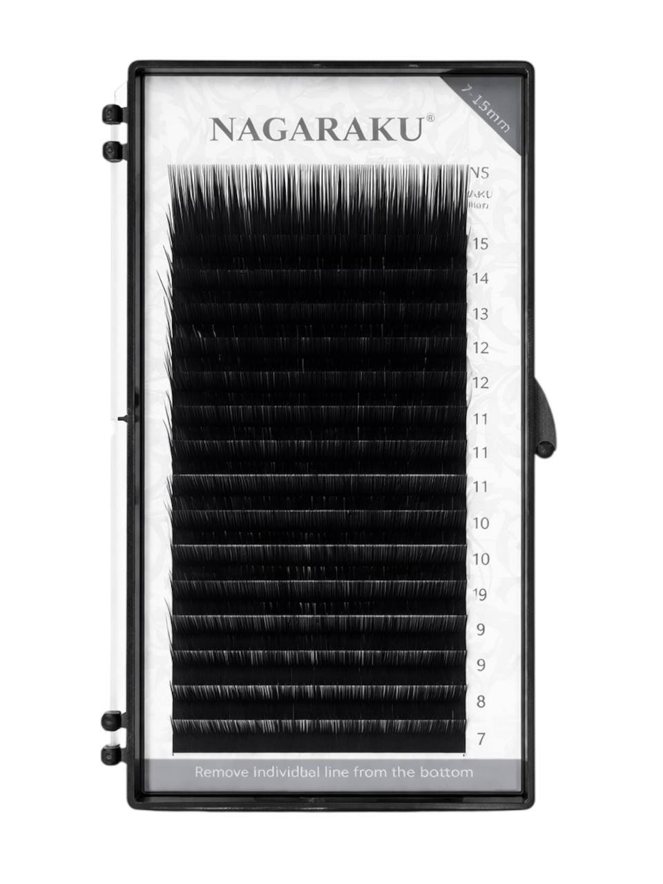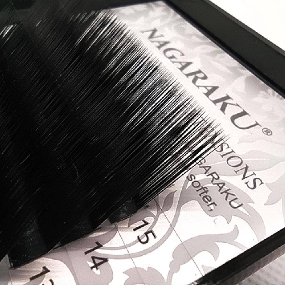 Nagaraku – вії високої якості, виготовлені з гіпоалергенного моноволокна. У нарощуванні дуже зручні, не ламаються, не деформуються. Підійдуть для поштучного та